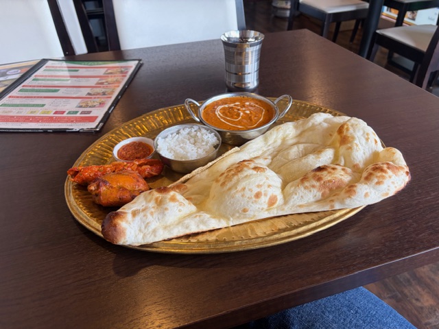 タンドリーチキンとシークカバブ、ナン、ライス、パパド、ドリンク付きのセットBです🍛