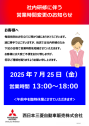 いつも中庄店をご利用いただきありがとうございます。 誠に勝手ではございますが西日本三菱自動車は社内研修実施のため、 7月25日は営業時間を13時~18時に短縮させていただきます。 皆様にはご不便をおか…