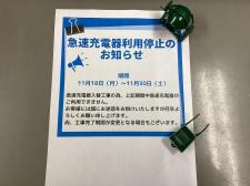 こんにちは! 新居浜店です。 いつも当店をご利用いただきありがとうございます。 今回は 急速充電器 利用停止のお知らせ! です。 11月18日月曜日~11月30日土曜日まで当店のEV PHEV用の急速…
