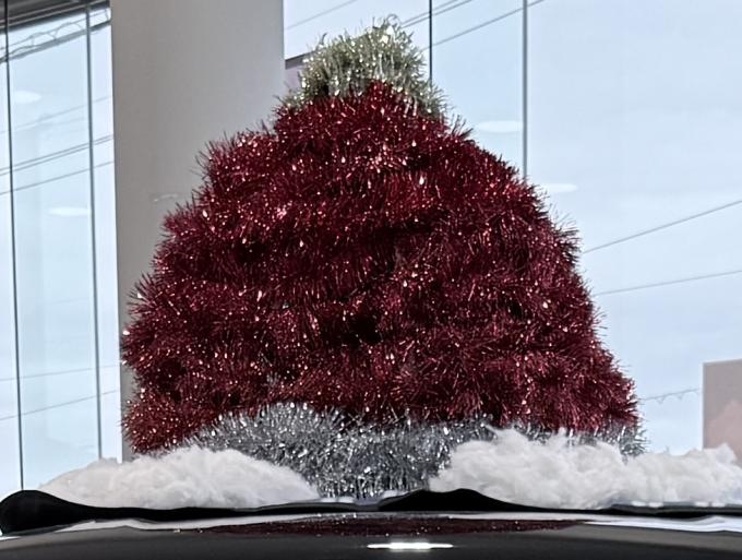 大垣店こんにちはー営業の水野です 不格好工作3です ついに!!! じゃあーーーーーん 不格好サンタさん帽子の完成!! ど、ど、どうですか... 目を細めたら割ときれいにできたのでは? デリカミニがサンタさん…