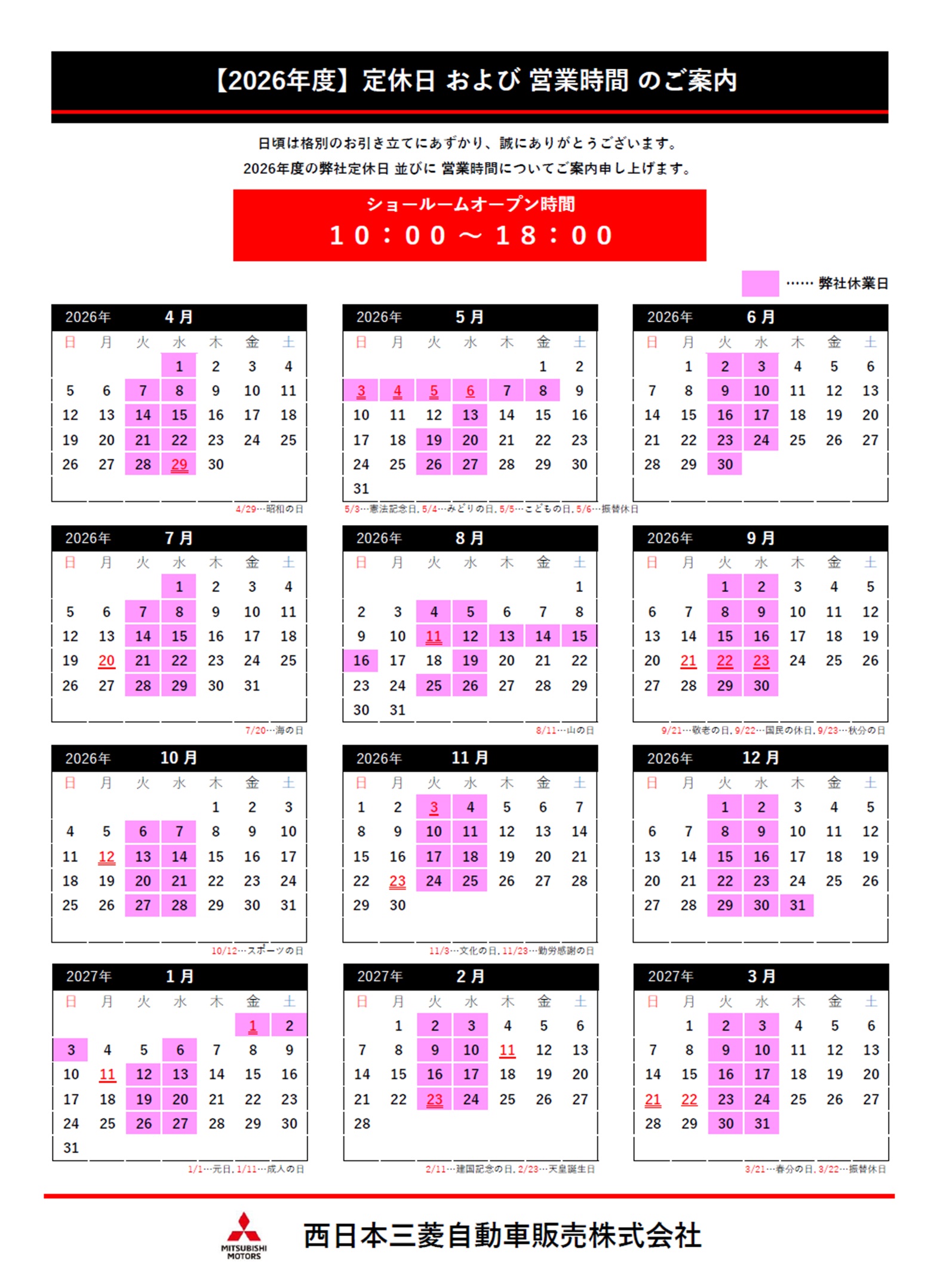 2026年3月 営業日のご案内📅