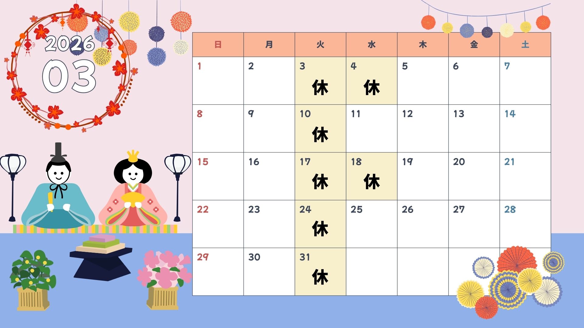------2026年3月 営業日のご案内📅------