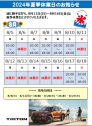 実習生の鈴木です。 8月に入り、ひときわ厳しい日差しが照りつけておりますが、 いかがお過ごしでしょうか。 7月下旬にもお知らせさせていただきましたが、 明日8月11日(金)からお休みをさせていただきま…