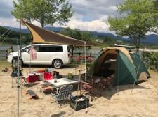 先日岐阜県にある「はなの湖オートキャンプ場」にサービスの森君家族が 行くというので、無理やりついて行ってきました。 2サイトでテント二つ。 梅雨時でまだ早かったので、サイトはガラガラで4組でした。 静…