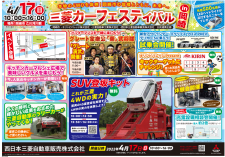 こんにちは ショップスタッフの天野です。 以前にもご案内させていただきましたが、 4月17日(日)に開催いたします 三菱カーフェスティバル新たなチラシが届きましたのでお伝えさせていただきます! プロの…