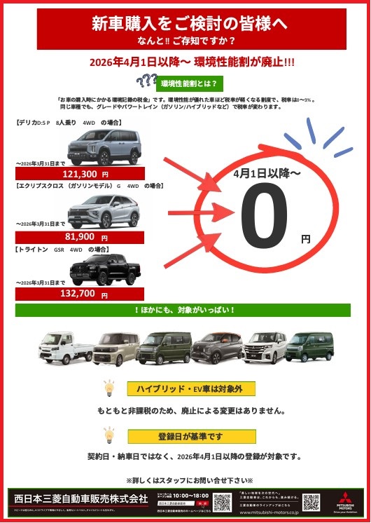 【環境性能割】が廃止👍👍!!👍👍!!