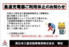 いつも堺店のブログをご覧いただきありがとうございます。 本日は堺店から急速充電器に関するお知らせがございます。 皆様にはご迷惑、ご不便をお掛け致しますが しばらくの間、よろしくお願いいたします。…