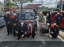 🌸先日の納車式🌸 T様の新車ご納車式の様子です。 秋晴れの中、スタッフとの写真撮影ご参加いただきました。 今回は、赤、黒2トーン色のEKクロススペースにお乗り換え頂きました。 T様に大変お似合いです!…