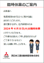臨時休業のお知らせ 甚だ勝手ながら、社内研修の為、 2024年4月8日(月)は 臨時休業とさせていただきます。 ご不便をお掛けして申し訳ありませんが、 ご了承くださいますよう 宜しくお願い申し上げます…