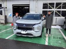こんにちは、太平通店です 24日雪のクリスマスイブにアウトランダーPHEVを ご納車させていただきましたR様です 9月まで約2ヶ月間、太平通店に実習生として 来てくれていました 実習が終わってもこうし…