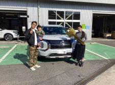 こんにちは、太平通店です M様、アウトランダーPHEVです 昨年12月に納車させていただいたのですが、 ご主人様は立ち会う事が出来ませんでした 今回の新車1ヶ月点検ご入庫時に、 あらためてご家族での写…