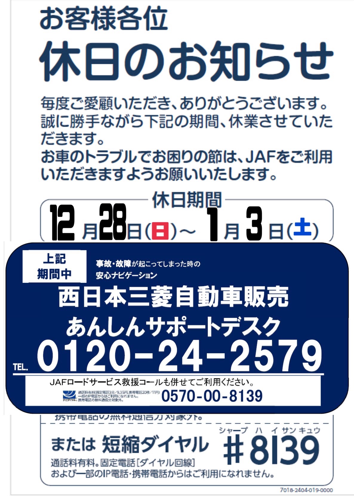 年末年始のお知らせです
