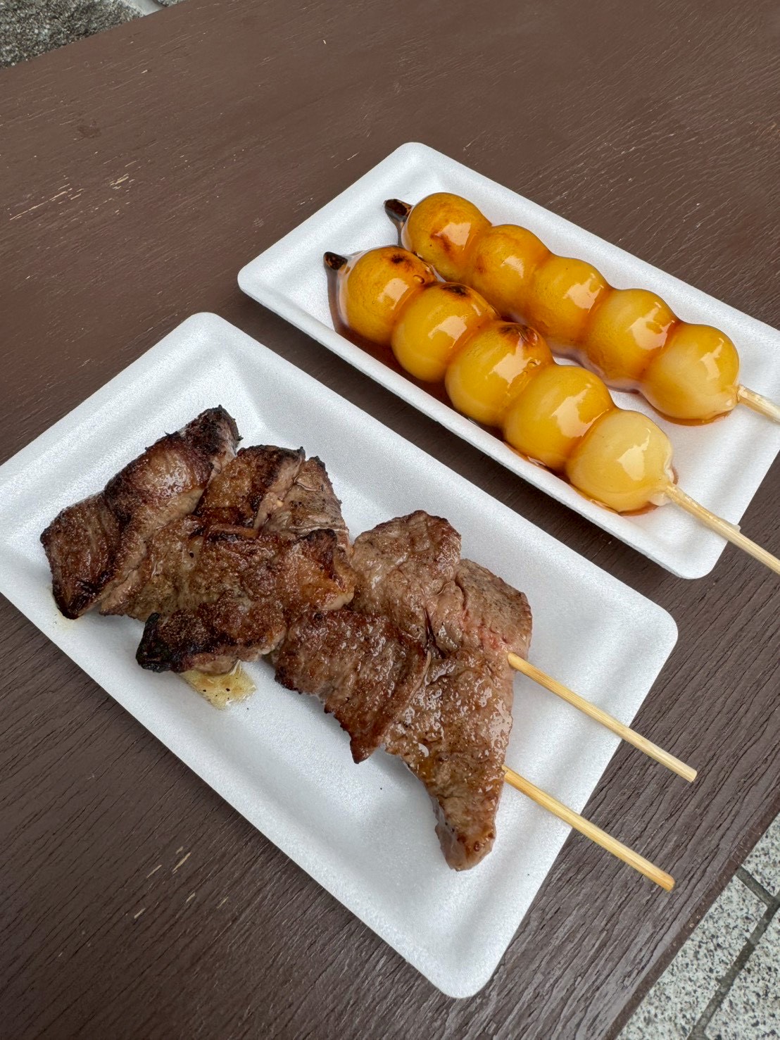 まず 現地に着いたらすぐに飛騨牛串焼きとみたらし団子    これがまたでらウマで(笑)
