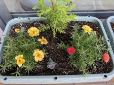 どもですーー ショップスタッフの田代です 多治見店ショールーム入口に植えた 確かポーチュラカ・・みたいな名前の花 (品種改良したヤツかな?) 一つの株から違う色の花が咲いてるの 不思議~ 我が家の花壇…