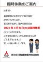 【お知らせ】 4月8日の月曜日は 社内研修の為臨時休業となります お車の故障等で緊急を要する場合には JAFでの対応をお願いします 電話番号 0570-00-8139 携帯からは♯8139 またはご加…