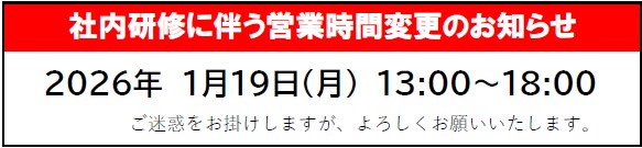 高山店臨時の営業時間変更のお知らせです。 通常、定休日は火曜と第1・3・5水曜日となっておりますが 1月19日(月)は営業時間が 午前中は社内研修の為、午後1時からの営業開始となります。 その時間帯でご来店…