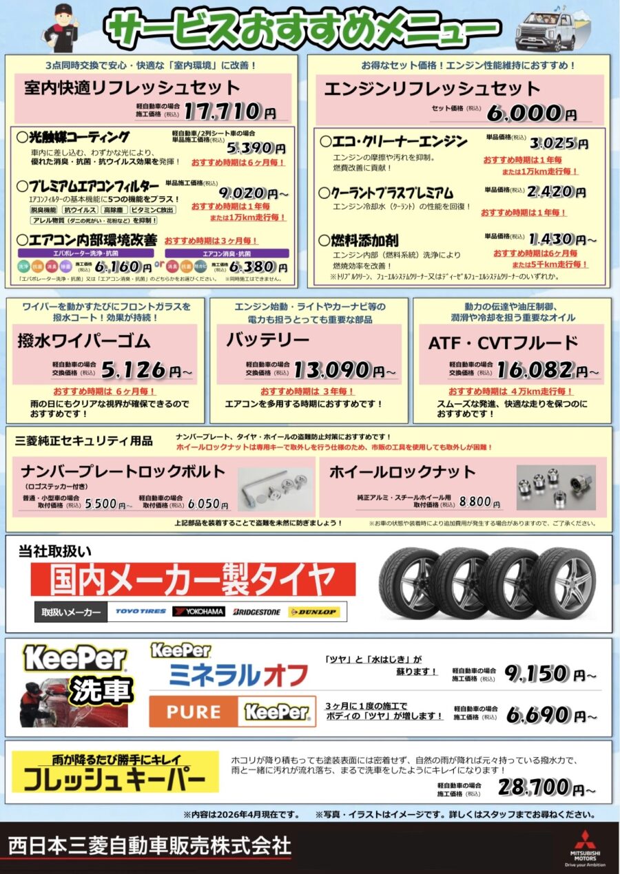 豊橋向山店こんにちは! 豊橋向山店です✨️ 3月になり、花粉がつらい時期になってきましたね🤧💦 体調にはお気をつけください! 3月のサービスメニューになります🧑🔧 …