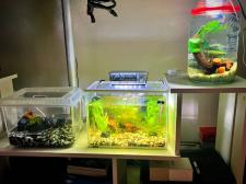 こんにちは!実習生の山道です! 趣味がたくさんある私ですが、今回は趣味の一つである🐟熱帯魚🐟を紹介したいと思います! ちなみに部屋の一部はこんな感じで水槽が占拠しております(笑) まずはショーベタのス…
