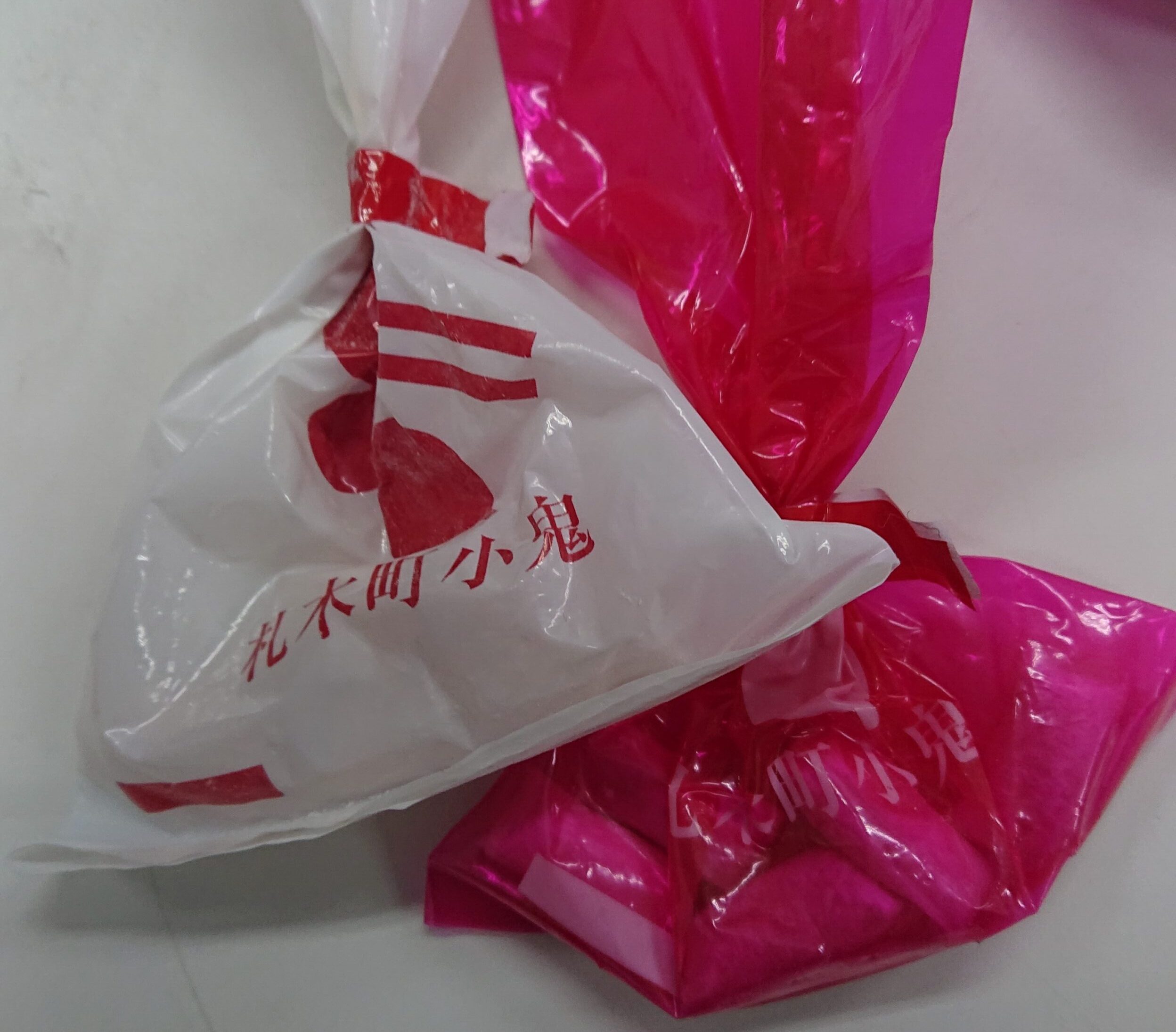 赤鬼が通った道は飴粉で真っ白になります😅