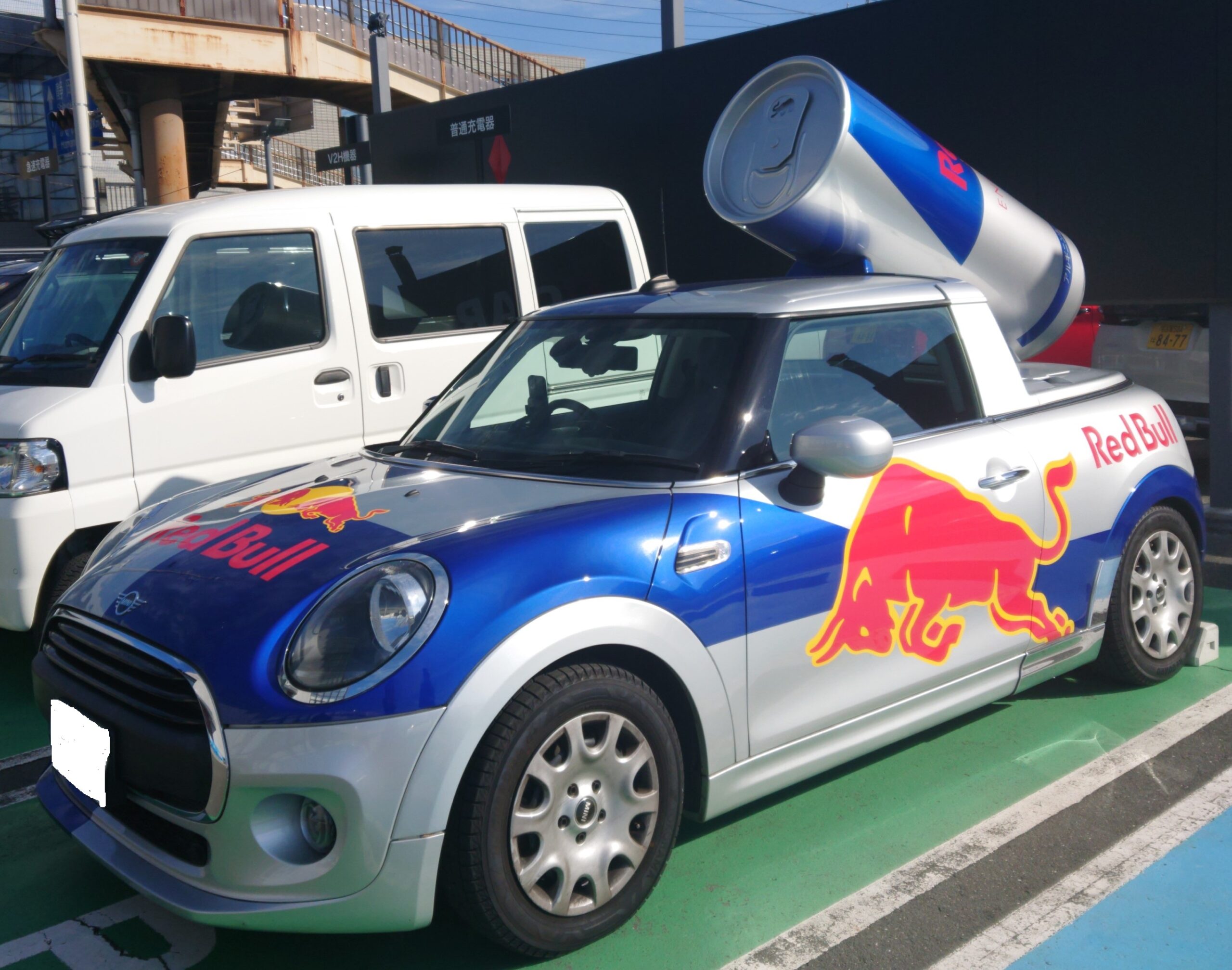 Red Bull Energy Drink の大きな缶を背負った車が