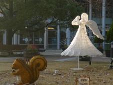 豊橋瓜郷店 糟谷です。 図書館の広場で天使の飾りをパシャリ。 警備員「これ光るから、夜にまた来なよ」 私「楽しみです。次回は夜に来ますね。」…