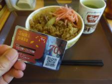 豊橋瓜郷店 糟谷です。 お昼がせわしなく牛丼で済ませた日の事、 店員「牛丼3つ買うなら、パスがお得です」 10円得するとの事で、購入しました。 一品に付き70円割引されるそうです。 リピートしそうです…