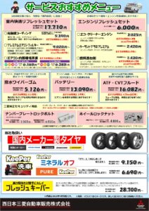 3月のサービスおすすめMENUです🔧