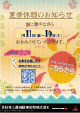 こんにちは ショップスタッフの福島です 本日は夏季休業日のご案内です。 お車の修理等で緊急を要する場合には JAF 0570-00-8139 携帯からは♯8139番 またはご加入されています保険のロー…