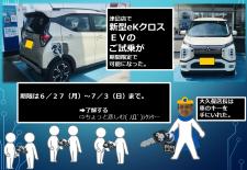 こんにちはショップスタッフの福島です 本日、嬉しいニュースがあります~ 6/27(月)から7/3(日)までの 期間限定で 新型eKクロスEVの試…