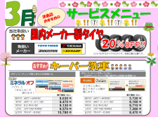 こんにちは 今日もなかなか風が強くってしかも冷たい それでも梅の花がちらほらと咲き始めてるのを 見つけるとちょっとだけ「春」を感じますね さて、ここで3月のサービスメニューをご紹介 花粉や黄砂で汚れが…
