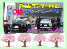 こんにちは いよいよ春到来でしょうか ご来店のお客様の服装が季節を感じます 3月10日 津島店にてO様納車式を行いました RVRから新型アウトランダーPHEVへ カラーはコズミックブルーマイカ 太陽の…