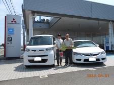 H様、晴天のなか白く光るekスペースです。 11年乗られたホンダシビックから代替頂きました。 お忙しい中、奥様もご一緒いただいたので記念撮影です。 H様は私どもから見てもとすごく研究熱心…