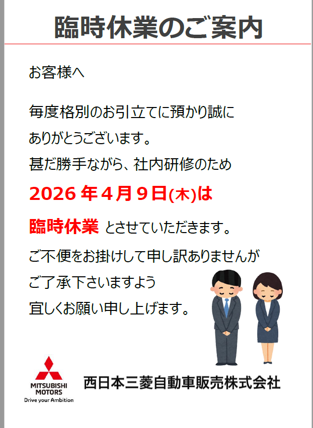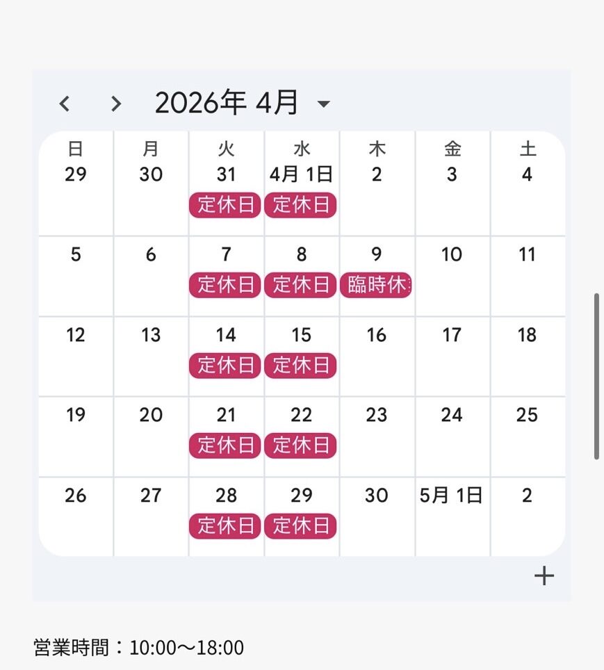 来月4月より定休日が変更となります