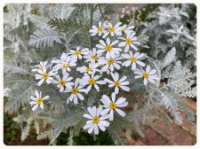 我が家の庭で2年目の シロタエギク(シルバーレース)です 初めて 花が咲きました うゎ~~~~~❣ 可愛い~~~~❣ 嬉しくて 直ぐに 花友に写真を送りました 笑 おはようございます 宇和島店 中…