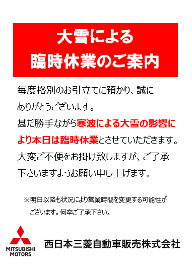本日、寒波による大雪の影響により