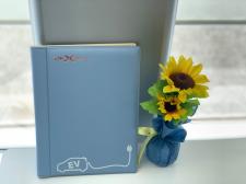 素敵なものが届きました♪ 新型EKクロスEV専用の車検証入れ イメージカラーは ミストブルーパール × カッパーメタリック 舌を噛みそうなカラー名ですが キレイなカラーリング…