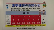 夏季休暇のご案内 弊社では8月13日(金)から8月18日(水)まで夏季休暇となります なお故障などでお困りの場合はJAFをご利用ください ご連絡先は電話0570-00-8139 または携帯電話から#8…