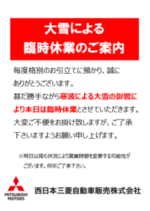 米子東店いつも米子東店のブログをご覧いただき ありがとうございます。 本日、寒波による大雪の影響により 13時より臨時休業とさせていただきます。 ご来店を予定されていたお客様には、…