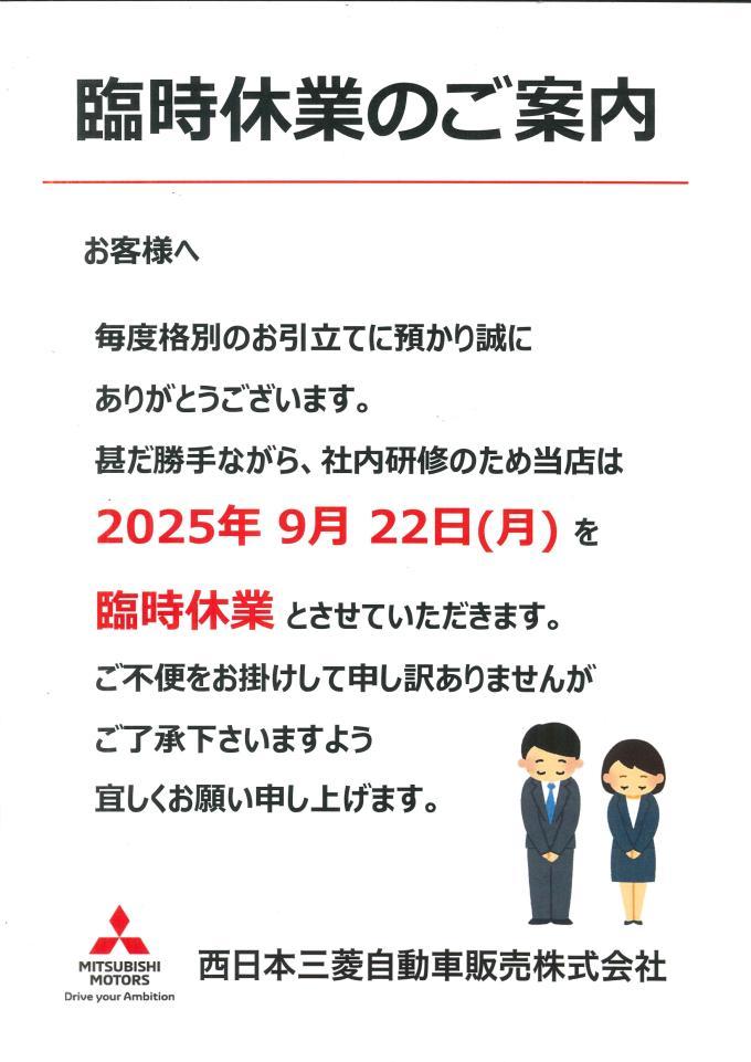 9月22日は社内行事の為、臨時休業をさせて頂きます。
