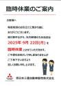 こんにちは 藤井寺店です♪ 臨時休業のお知らせです(^^)/ 9月22日は社内行事の為、臨時休業をさせて頂きます。 営業再開は23日、24日の定休日を挟んで25日からになります。 どうぞ宜しくお願い致…