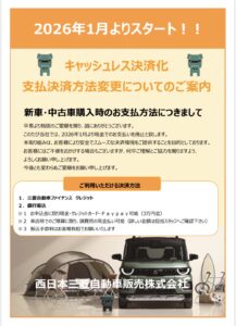 平素より格別のご愛顧を賜り、誠にありがとうございます。 このたび当社では、2026 年 1 月より新車・中古車の現金でのお支払いを廃止と致します。 本取り組みは、お客様により安全でスムーズな決済環境を…