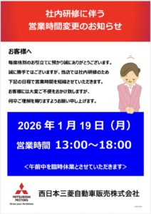 いつも東成店のブログをご覧いただき誠にありがとうございます。 今回は、2026年の初売りに関してお知らせさせて頂きます。 西日本三菱自動車販売 東成店では、1月4日から2月1日の期間に『…