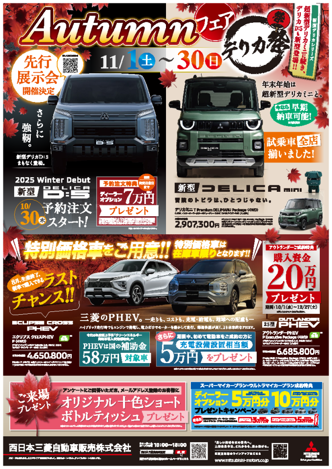 新型デリカD:5予約注文開始!& Autumnフェア開催中!!