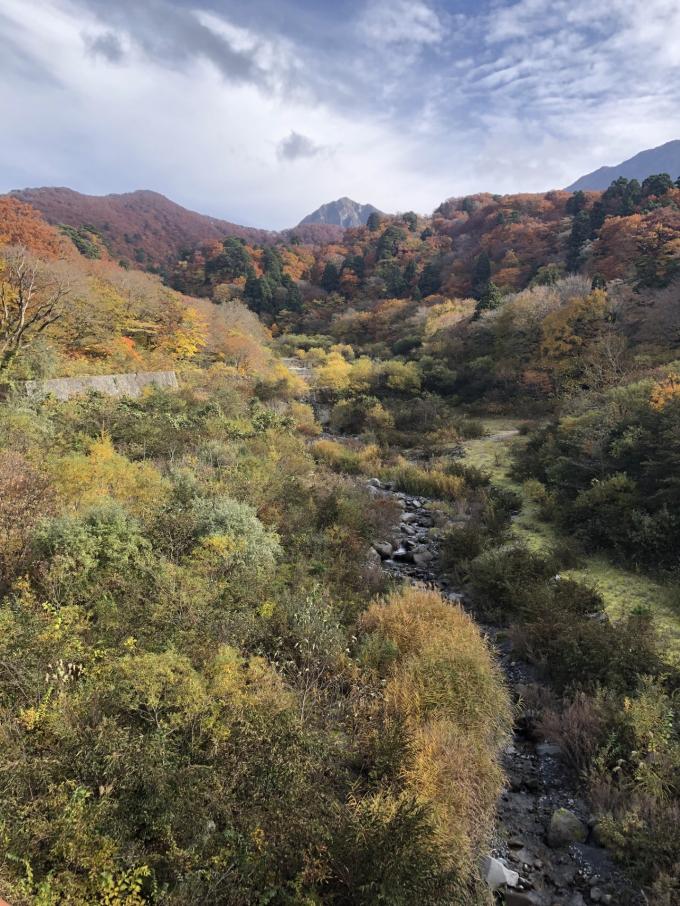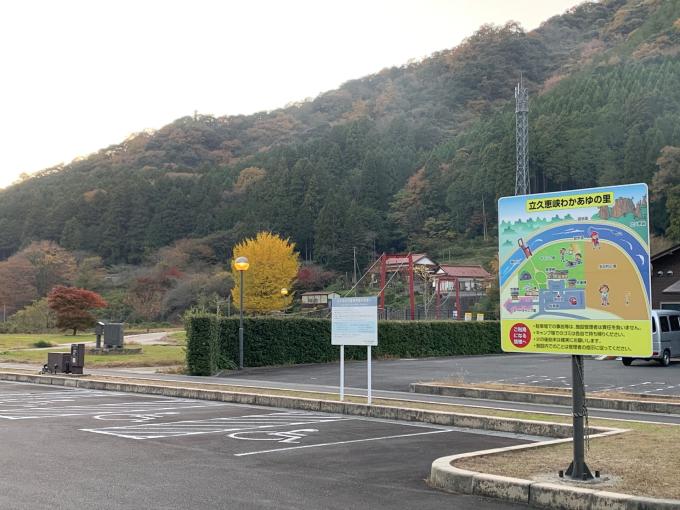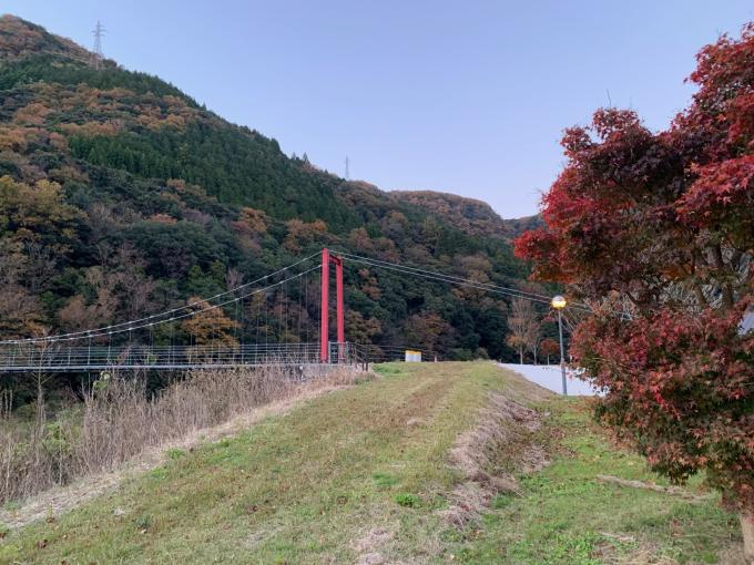 神戸川沿いにあり吊り橋を渡り紅葉を観ながらの