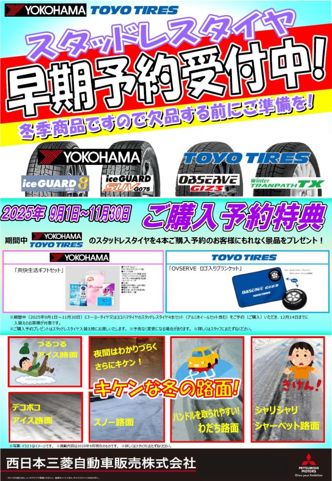 スタッドレスタイヤ早期予約受付は