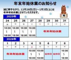 ※一部店舗では、毎週火曜・水曜を定休日とさせていただいております。ご来店の際は事前にご確認いただけますようお願い申し上げます。