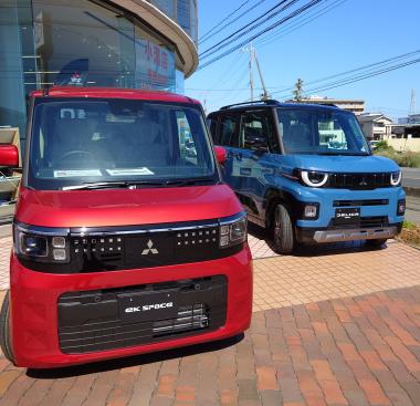 本日より、超新型デリカミニと新型EKスペースの先行展示をしております。