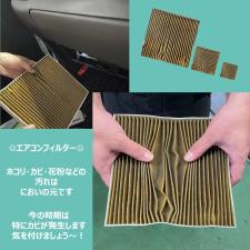 こんにちは! エアコンフル稼働のこの時期ですが、 エアコンフィルターの交換を定期的にされていますか? エアコンフィルターにごみ、ほこり、花粉などが たまるとにおいが発生します 特に今の時期はカビが発生…