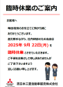 こんにちは 9月22日(月)は社内研修の為 臨時休業とさせて頂きます。 ご迷惑をおかけして申し訳ございません。 どうぞよろしくお願いいたします。 …
