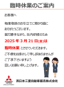 ※一部店舗では、毎週火曜・水曜を定休日とさせていただいております。ご来店の際は事前にご確認いただけますようお願い申し上げます。